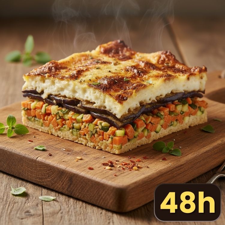 Version veggie généreuse de la moussaka, riche en légumes délicieux et épices.